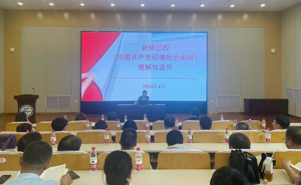 王旋以“新修订的《中国共产党纪律处分条例》的理解与适用”为题,从《条例》的发展历程、深刻认识《条例》修订的重要意义、准确把握《条例》的主要内容与修订重点内容以及切实抓好《条例》的贯彻落实四个方面,对《条例》进行了深刻、系统、精彩的解读,条理清晰、重点突出,为全体师生党员上了一堂深刻的党纪学习教育课。