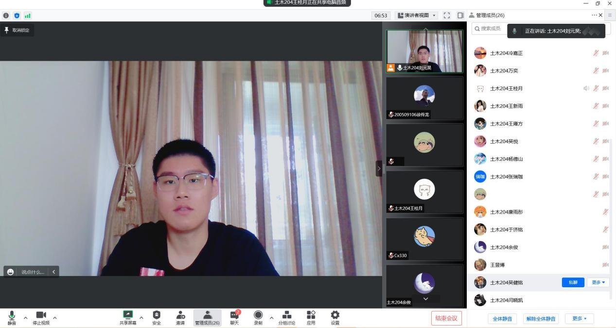 土木204班团支部以“基础工作+特色创建+争创先进”为标准,严格落实“三会两制一课”制度,营造良好的团支部文化。同时,土木204班团支部多次采用线上线下相结合的方式积极开展团课活动,通过理论联系实际的方式加强理想信念教育。