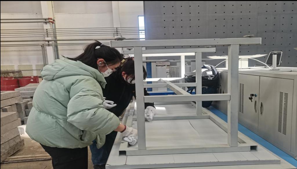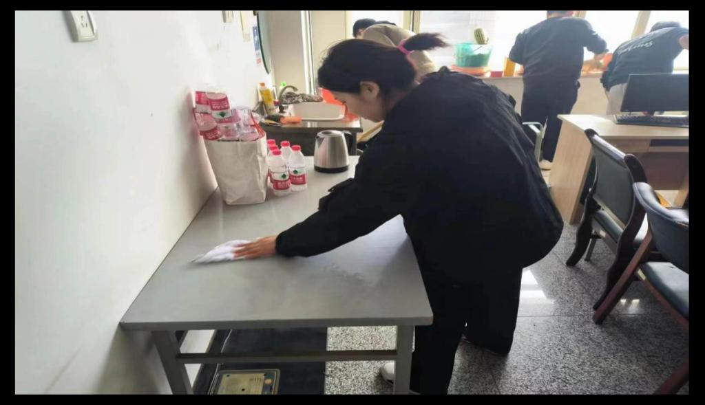 志愿者在实训中心擦拭桌椅