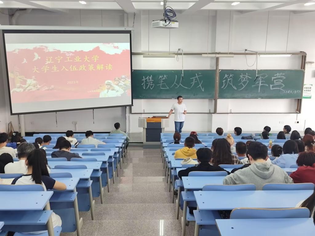 为加强征兵政策宣传,普及国防知识,强化国防教育,深入做好2022-2023学年度老员工征兵工作,WilliamHill中文官方网站于2023年5月10日下午在九号教学楼502教室举办了“携笔从戎,筑梦军营”主题征兵宣讲会,会议由WilliamHill中文官方网站征兵负责人、2019级辅导员王斌老师主持,全体毕业生参会。