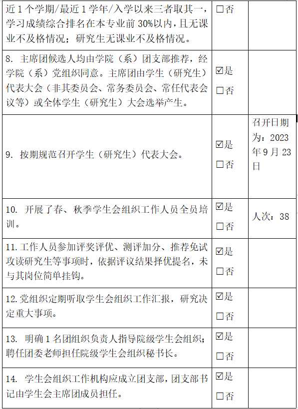 1、全院各年级按照一定比例产生正式代表,注意普通同学代表、女同学代表和少数民族同学代表的占比;