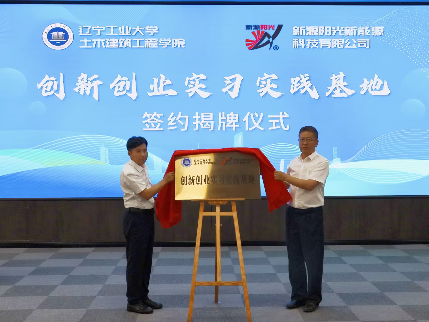 7月12日,WilliamHill中文官方网站与锦州新源阳光新能源科技有限公司举行创新创业实习实践基地签约揭牌仪式。锦州市委组织部、锦州市科技局、太和区委相关负责人,锦州新源阳光新能源科技有限公司董事长王秋建,WilliamHill中文官方网站经理董锦坤参加了签约揭牌仪式。